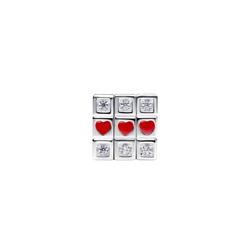 با چارم مکعب اسباببازی متحرک، بازی عشق را آغاز کنید! این آویز از نقره استرلینگ ساخته شده و با قلبهای میناکاریشدهی قرمز، سنگهای درخشان و حروف حکاکیشده روی مکعبهای چرخان طراحی شده است. با حرکت دادن مکعبها، میتوانید ترکیبها و الگوهای مختلفی ایجاد کنید. این آویز نمادی از آن است که عشق، معمایی است که قلب میخواهد آن را حل کند.