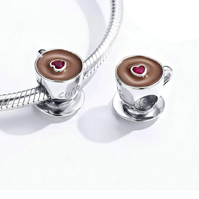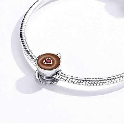 با چارم فنجان قهوه پاندورا، به استایل خود کمی کافئین و انرژی اضافه کنید.این چارم نقرهای زیبا که به شکل یک فنجان با قلبی کوچک روی سطح قهوهی داخل آن طراحی و ساخته شده به صورت دستی لعابکاری شدهاست.روی این فنجان کوچک کلمهی قهوه (coffee) حکاکی شده و بهترین هدیه برای علاقهمندان به این نوشیدنی میباشد.