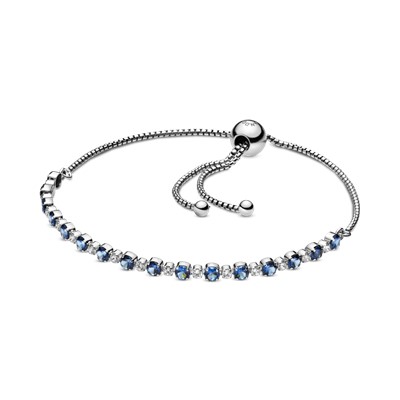 رنگی که سالهای زیادی است در خانوادههای سلطنتی استفاده میشود.این دستبند و رنگ نگینهای آن با الهام از رنگهای سلطنتی طراحی شده و حسی اشرافی به استایل شما خواهد داد.این دستبند نقره که با نگینهای شفاف و آبی زیرکُنیا تزیین شده است را برای داشتن ظاهری متفاوت به کلکسیون پاندورایی خود اضافه کنید.گیره کشویی را برای بهترین اندازه تنظیم کرده و این دستبند تنیسی را سالها استفاده کنید.