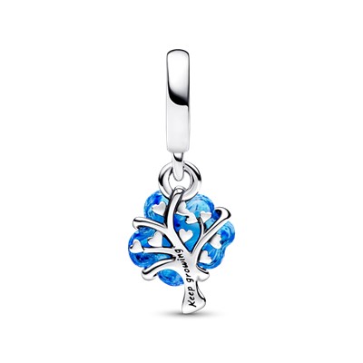 حمایت خود را از یونیسف(UNICEF) با این درخت آبی نشان دهید. درست مانند شاخه های به هم پیوسته یک خانواده یا جامعه، همه ما می توانیم همراه با یونیسف به کودکان در همه جای جهان کمک کرده و فرصت لازم برای رشد را در اختیار آنها قرار دهیم. روی این چارم زیبا که به شکل درخت خانوادگی پاندورا با کریستال مورانو آبی به صورت دستی طراحی و ساخته شده است پیام های"به رشد خود ادامه دهید" و "حمایت از صداهای جوان" حکاکی شده اند.