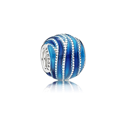 استایل آبی رنگ خود را با چارم مهرهای آبی امواج نقاط نقرهای پاندورا تکمیل کنید.با اضافه کردن این چارم زیبا به استایل خود درخشش و رنگ آبی بیشتری ببخشید.آن را با چارمهای هم رنگ ست کرده یا با چارمهای رنگی دیگر استایلی چند رنگ و منحصر به فرد بسازید.این چارم آویز دارای خطوط نقرهای مواج در اطراف خود بوده و به استایل شما شکلی خاص اضافه میکند.