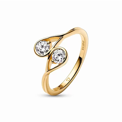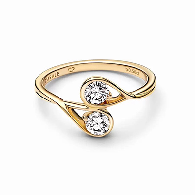 این حلقه زیبا از جنس طلای زرد بوده و دارای دو الماس ساخته شده در آزمایشگاه با قیراط 0.25 است. این حلقه نمادی از پتانسیل درونی ما و بهترین گزینه برای ساخت ظاهری مدرن است. شما می توانید این طرح را با الماس های دیگر پاندورا ست کرده و بیشتر از همیشه بدرخشید. این طرح حلقه با جنس طلای سفید نیز موجود است.