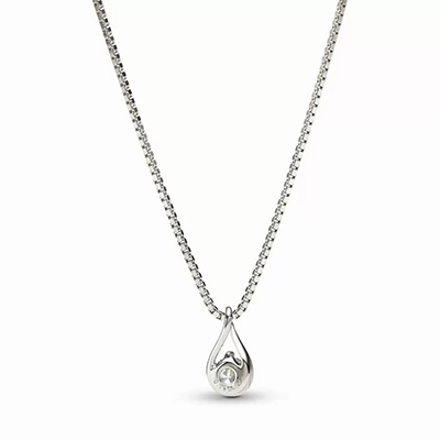 این گردنبند ظریف از جنس طلای سفید بوده و دارای الماسی ساخته شده در آزمایشگاه با قیراط 0.25 می باشد. این گردنبند زیبا نمادی از پتانسیل درونی ما و بهترین گزینه برای ساخت ظاهری مدرن است. شما می توانید این طرح را با الماس های دیگر پاندورا ست کرده و بیشتر از همیشه بدرخشید.