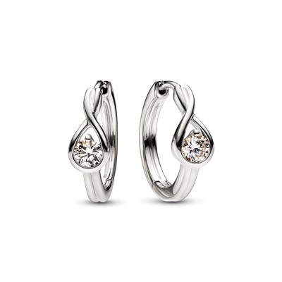 این گوشواره های حلقه ای از جنس طلای سفید هر کدام دارای الماسی با قیراط 0.25 هستند. این الماس های زیبا در مرکز این گوشواره های حلقه ای و نماد ابدیت قرار گرفته اند. با منعکس کردن نور این الماس های درخشان به استایل شما درخششی منحصر به فرد اضافه میکند.