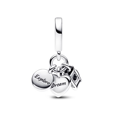 این چارم مخصوص رویاپردازان و ماجراجویان طراحی و ساخته شده است. بهترین خاطرات سفر خود را با این چارم سه بخشی روی دستبند خود داشته باشید. این چارم نقره ای از سه بخش به شکل های یک دوربین، یک قلب به شکل نقشه کره زمین و یک قطب نما با تمام جزییات آن ساخته شده است. نقشه کره زمین با لعاب سبز و آبی به صورت دستی لعاب کاری شده است.پیام های "کشف"، "رویا" و "کاوش" در پشت هر یک از این آویزها حک شده است. آن را همراه با چارم های مورد علاقه خود به دستبندتان اضافه کرده و به خود یادآوری کنید که همیشه به کاوش و سفر بپردازید.
