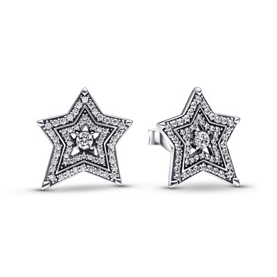 گوشواره میخی ستارههای آسمانی نامتقارن پاندورا به استایل شما درخششی آسمانی اضافه میکند. این گوشوارهها هرکدام به شکل ستاره ای نامتقارن و نقره ای طراحی شده و با دقت و به صورت دستی با ردیف هایی از نگین های شفاف تزیین شده اند. این کار را به طرح های مشابه پاندورا ست کرده و استایلی آسمانی بسازید.