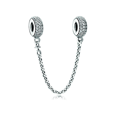 از امن بودن چارمهای خود مطمئن شوید و این زنجیر ایمنی درخشان را به دستبند دقایق خود اضافه کنید. با این چارم به مجموعه چارم های روی دستبندتان نظم و ایمنی ببخشید. با درخشش نگین های شفاف این چارم پاندورا به استایل خود کلاس و ظرافتی جدید اضافه کنید.
