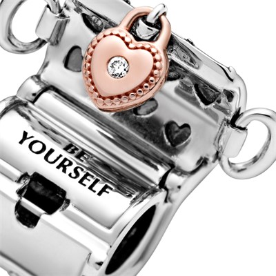 با این چارم خاص از کلاب 2019 پاندورا شخصیت متفاوت خود را نشان دهید. این چارم دو رنگ به شکل صندوقچه ای با قفلی رزگلد طراحی و ساخته و روی آن با نگینی از جنس الماس (قیراط 0.01) تزیین شده است. با باز کردن این صندوقچه زیبا شما پیام "خودت باش" (Be yourself) را خواهید دید. این چارم که به تعداد محدود ساخته شده است برای طرفداران پاندورا یک قطعه کلکسیونی و ارزشمند خواهد بود.