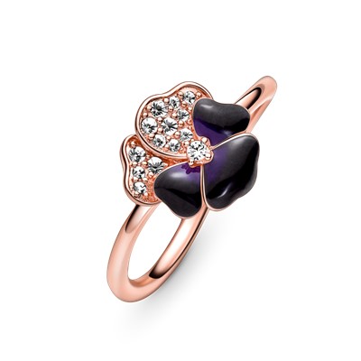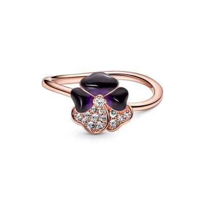 با انگشتر گل بنفشه بنفش تیره پاندورا گلهای استایل خود را افزایش دهید.گل بنفشهی انگشتر شما با روکش رز گلد ۱۴ عیار دارای دو گلبرگ نگیندار شده و یک گلبرگ لعابدار است که به صورت دستی ساخته شدهاند و مانند هر گل در طبیعت هرکدام شکل منحصر به فرد خود را دارند.طراحی طبیعی آن حس آزادی در فصل بهار را تداعی میکند.جدیدترین گل پاندورا برای زیباتر کردن باغ شما.گل بنفشه نماد عشق در اشکال مختلف است با در دست داشتن این انگشتر عشق به عزیزانتان را برای خود یادآوری کنید.