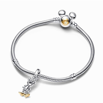 این طرح محدود و خاص که با الهام از صدمین سالگرد دیزنی ساخته شده است را به عنوان طرفدار واقعی دیزنی به مجموعه خود اضافه کرده و استایلی منحصر به فرد برای خودتان بسازید.این چارم آویز به شکل شخصیت محبوب مینی موس ساخته شده است و برای درخشش هرچه بیشتر کفش های او دارای روکش طلا 14 عیار است.پشت سر او پیام "100 دیزنی" (Disney 100) حکاکی شده است تا به شما مناسبت حضورش روی دستبندتان را یادآوری کند.