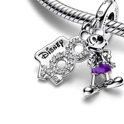 با محبوب ترین شخصیت دیزنی صدمین سالگرد را جشن بگیرید. این چارم آویز و دو بخشی از جنس نقره بوده و به صورت دستی تزیین و لعاب کاری شده است. برای درخشش هرچه بیشتر شلوارک میکی با لعاب براق و عدد 100 با نگین های شفاف زیرکنیایی تزیین شده اند. آن را به مجموعه چارم های دیزنی خود اضافه کرده و استایلتان را کامل تر کنید.