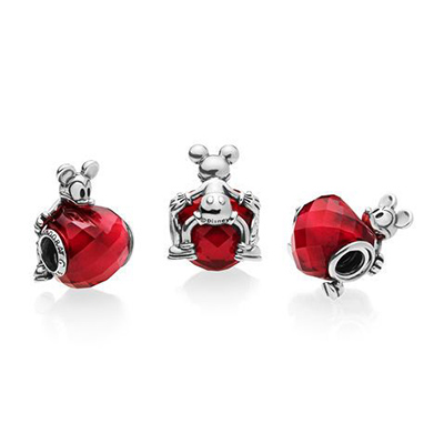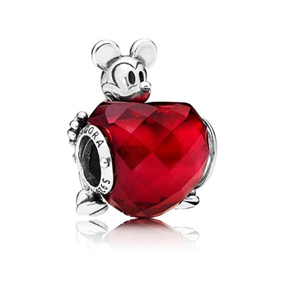 عاشق بودن خود و شخصیت پر احساستان را با این چارم زیبا از شخصیت محبوب دیزنی میکی موس نشان دهید. این چارم نقره ای که به شکل میکی درحال به آغوش کشیدن قلبی کریستالی و بزرگ طراحی و ساخته شده است نشان دهنده عشق زیاد او به عزیزان و اطرافیانش است.این قلب کریستالی و قرمز را به مجموعه چارم های دیزنی خود اضافه کرده و استایل خود را کامل تر کنید.