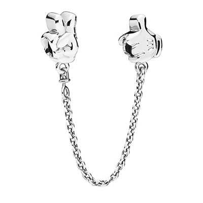 شخصیت جذاب و بازیگوش میکی موس را به استایل خود بیاورید.با این زنجیر ایمنی نقرهای که به شکل دست های میکی طراحی شده است هم حس شوخطبعی خود را نشان دهید و هم چارمهای عزیزتان را امن روی دستبند نگهدارید.