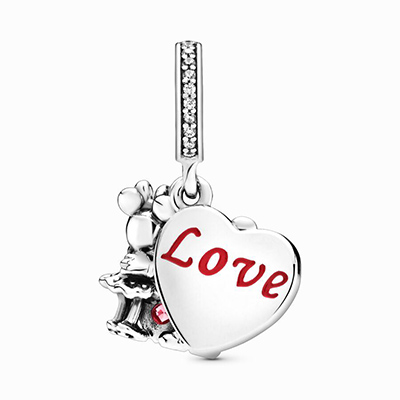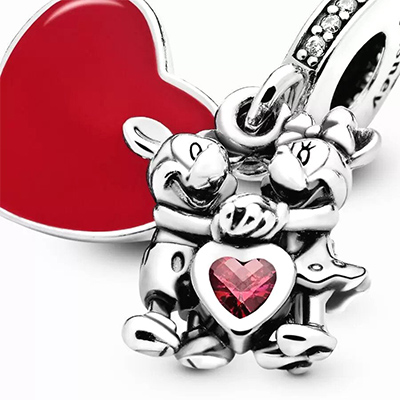 عشق خود را در استایل دیزنی خود با این دو زوج شیرین و رمانتیک نشان دهید. این چارم آویز نقره ای به صورت دستی با لعاب قرمز لعاب کاری و با نگین های درخشان قرمز و شفاف تزیین شده است. آن را به عنوان یادآور داستان عشقتان به مجموعه خود اضافه کرده یا به شخصی خاص هدیه داده و عشقی دو طرفه را جشن بگیرید.