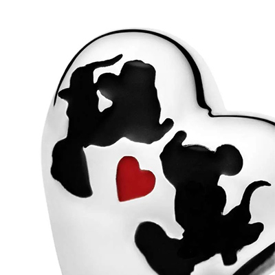 عشق خود را با کمک دیزنی و این زوج شیرین و رمانتیک نشان دهید. این چارم قلبی شکل نقره ای به صورت دستی با لعاب قرمز و مشکی لعاب کاری شده است.در پشت این چارم پیام "به جادو باور داشته باش" حکاکی شده تا آن را به عنوان یادآور داستان عشقتان به مجموعه خود اضافه کرده یا به شخصی خاص هدیه داده و عشقی دو طرفه را جشن بگیرید.