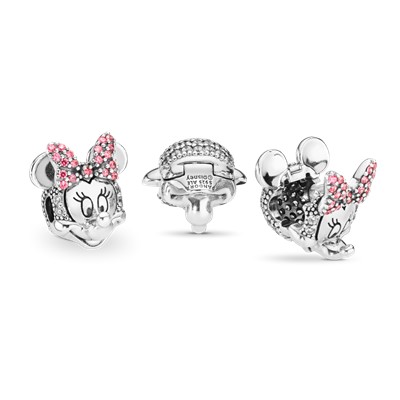 با چارم کلیپی نگیندار چهرهی مینی موس دیزنی پاندورا انرژی این شخصیت محبوب را به استایل خود اضافه کنید.شما میتوانید این چارم نقرهای و زیبا که با نگینهای شفاف و صورتی زیرکُنیا تزیین شدهاست را با چارمهای دیگر مینی موس، میکی موس و دیزنی ست کرده و استایل خاص خود را بسازید.