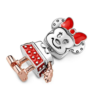 یکی از شخصیتهای محبوب کودکی خود را از دنیای دیزنی به مجموعهی خود اضافه کنید. این ربات کوچک زیبا و دو رنگ به شکل مینی موس طراحی و ساخته شده است.شما میتوانید جزییات صورت، لبخند و دامن قرمز مینی شخصیت دوستداشتنی دیزنی را ببینید.میتوانید میکی و مینی را همراه با باقی چارمهای مورد علاقهتان از شخصیتهای دیزنی روی دستبندتان داشته باشید.
