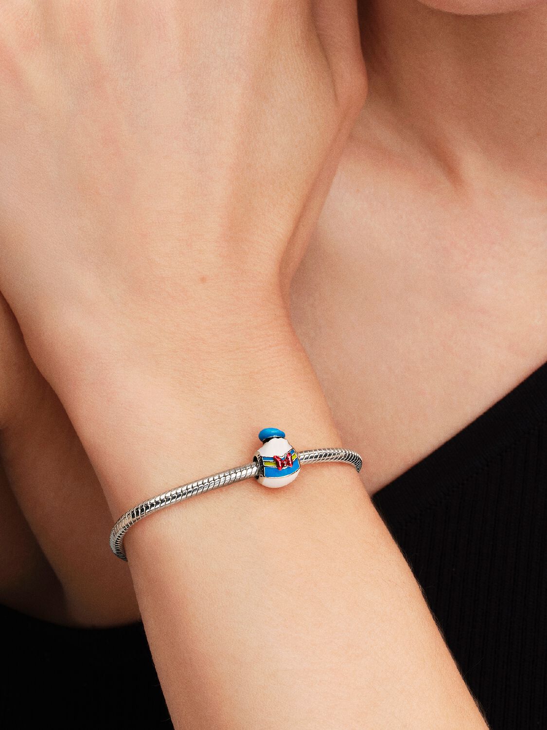 - مناسب برای دستبندهای رنگی یا نقرهای جهت برجسته شدن مینای آبی دونالد.