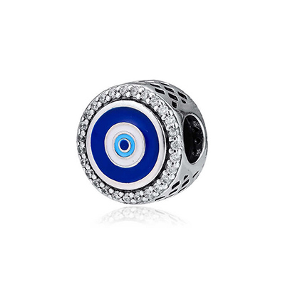 به استایل خود کمی رنگ آبی، درخشش و انرژی مثبت اضافه کنید.این چارم که به شکل نماد قدیمی چشم زخم (evil eye) طراحی و ساخته شدهاست شما را از انرژی منفی محافظت کرده و علاوه بر آن استایل شما را خاصتر میکند.این چارم زیبا و مهرهای با نگینهای زیرکُنیا شفاف تزیین و به صورت دستی لعابکاری شدهاست.آن را با نمادهای دیگر روی دستبند یا گردنبند خود همراه کرده و استایل خاص خود را بسازید.