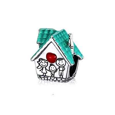 هرجا خانواده و عشق وجود داشته باشد آنجا خانه است! این چارم زیبا را به مجموعه خود اضافه کرده و حس امنیت خانه را همه جا همراه داشته باشید. این چارم نقره ای به صورت دستی ساخته و لعاب کاری شده است. آن را به اعضای خانه خود هدیه داده یا روی دستبند مورد علاقه خود همواره داشته باشید.