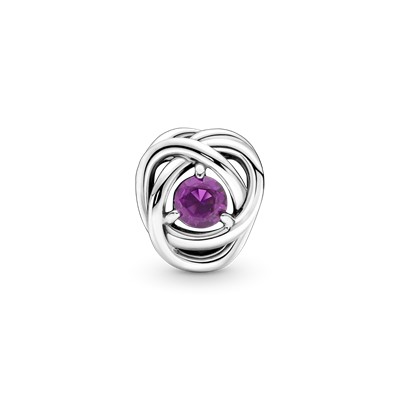 با اضافه کردن چارمهای مهرهای دایرهی ابدی نگیندار پاندورا به دستبندهای خود رنگ و شخصیتی جدید ببخشید.شما میتوانید با این چارم زیبا، تولدی در ماه فوریه ( ۱۲ بهمن تا ۹ اسفند ) را جشن بگیرید.این طرح خاص که چند دایره در هم تنیده را نشان میدهد، در مرکز خود دارای نگینی رنگی و درخشان است.این چارم نماد ابدیت و حسهای همیشگی است.هر یک از نگینها و رنگ آنها به عنوان نمادی برای ماه تولد اشخاص عمل میکنند.این نگین بنفش، نماد خلاقیت،دانش و قوه تخیل برای متولدین ماه فوریه است.شما میتوانید آن را به کلکسیون شخصی خود اضافه کنید یا به یکی از عزیزانتان که در ماه فوریه متولد شدهاست، هدیه دهید.