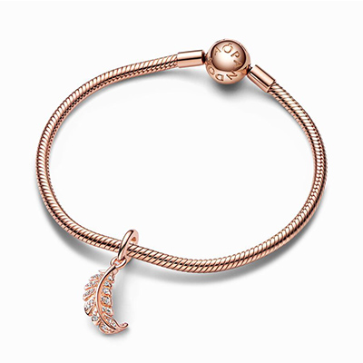 درخشش فصل بهار را با این طرح از پاندورا به استایل خود بیاورید. این چارم آویز که به شکل پری کج طراحی شده دارای روکش رزگلد بوده و برای درخشش هرچه بیشتر با نگین های شفاف به صورت دستی تزیین شده است. آن را با سایر قطعات مشابه ست کرده و ظاهری خاص بسازید.