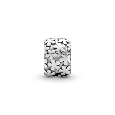 یک طرح زیبا برای ایجاد تعادل در استایل جذاب شما.این چارم زیبای نقرهای به شکل گلهایی برجسته و با جزییات روی پسزمینهای نقرهای طراحی شدهاست.این چارم برای اتصال به دستبندهای دقایق ساخته شده و فاقد گیرهی سیلیکونی است، در نتیجه به تتهایی روی دستبند شما حرکت خواهد کرد و در جای خود ثابت نمیماند.
