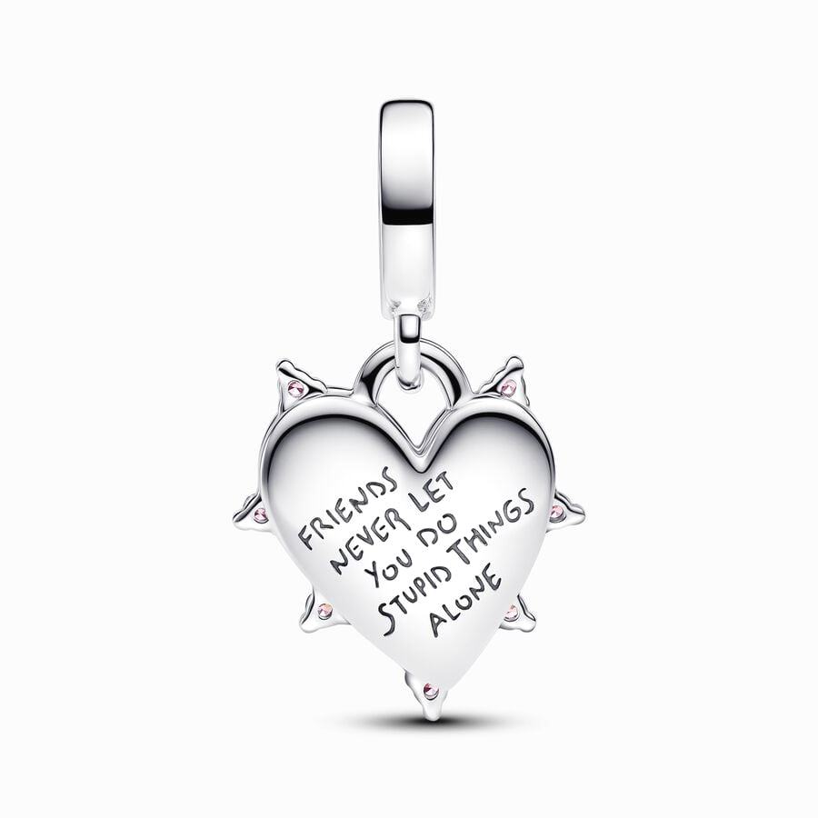 با این چارم به دوستان صمیمی خود نشان دهید که در هر شرایطی با آنها هستید. این چارم آویز درخشان که با سنگ اوپال ساخته شده در آزمایشگاه تزیین شده است نماد دوستیهای همیشگی است. پشت این قلب نقرهای پیام "دوستان هیچوقت نمیگذارند کارهای احمقانه را تنهایی انجام دهی"(FRIENDS NEVER LET YOU DO STUPID THINGS ALONE) حکاکی شده و بهترین هدیه برای بهترین دوست شماست.