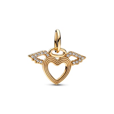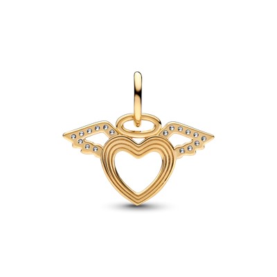 این چارم طلایی نمادی از عشق و محافظت فرشتگان زندگی شماست. این چارم آویز بالهای فرشته و قلب با روکش طلای 14 عیار دارای یک طرح کلی به شکل قلبی برشخورده با خطوط تابشی شیاردار است که در بالای آن هالهای قرار دارد که چارم را به گیره آن متصل کرده همچنین بالهای فرشته در دو طرف این قلب باز شده اند. هر بال فرشته دارای یک ردیف نگین زیرکنیا شفاف است که حس درخشانی به آن اضافه میکند.