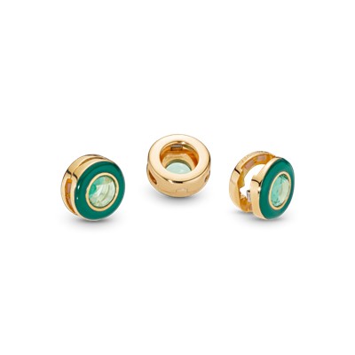 این چارم که برای دستبندهای رفلکشن پاندورا طراحی و ساخته شده است را به استایل خود افزوده و بیشتر از همیشه بدرخشید. این چارم کلیپی دارای روکش طلا 18 عیار بوده و به صورت دستی با لعاب براق سبز و نگینی چند وجهی در مرکز آن تزیین شده است. آن را به چارم های مشابه اضافه کرده و ترکیب رنگی منحصر به فرد در استایل خود ایجاد کنید.