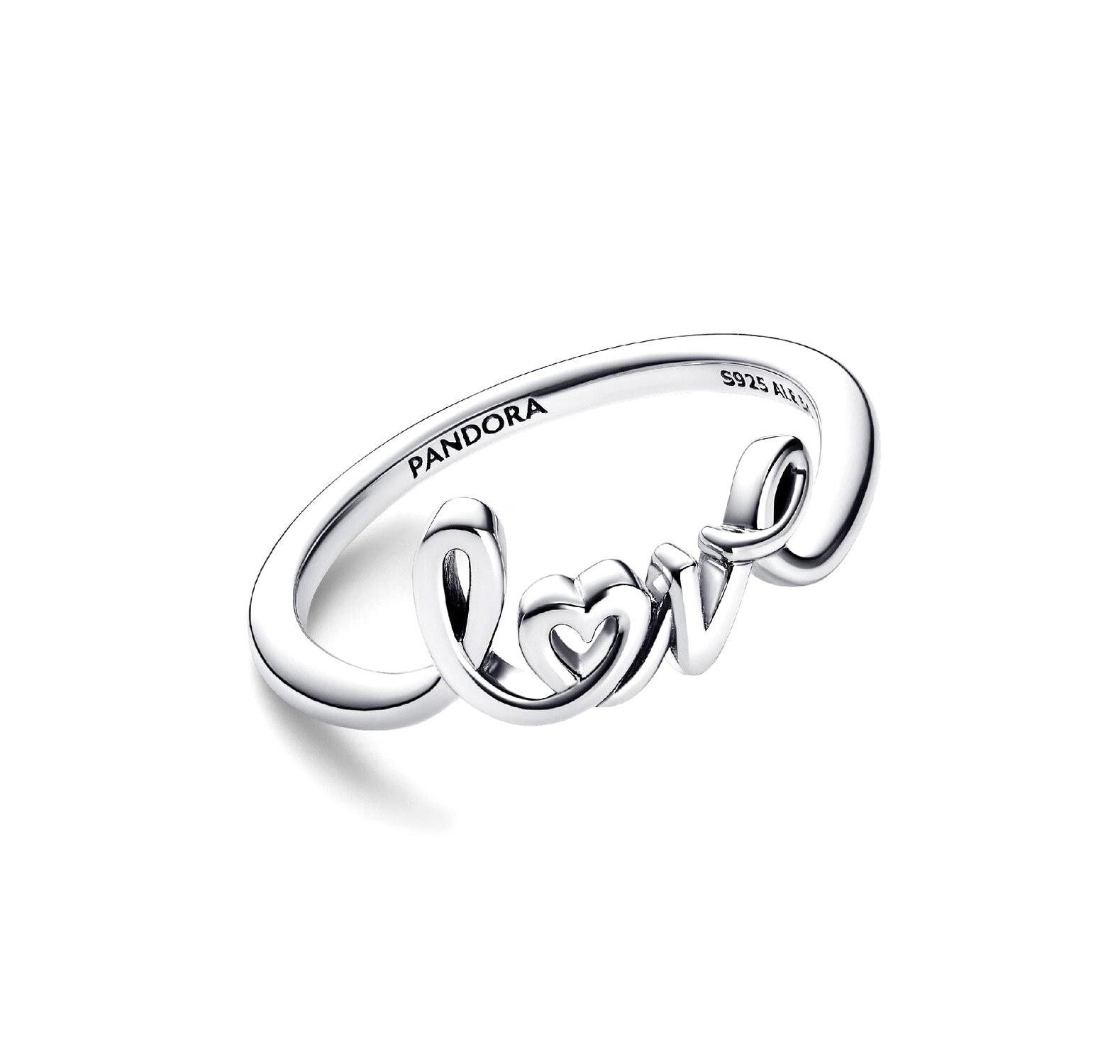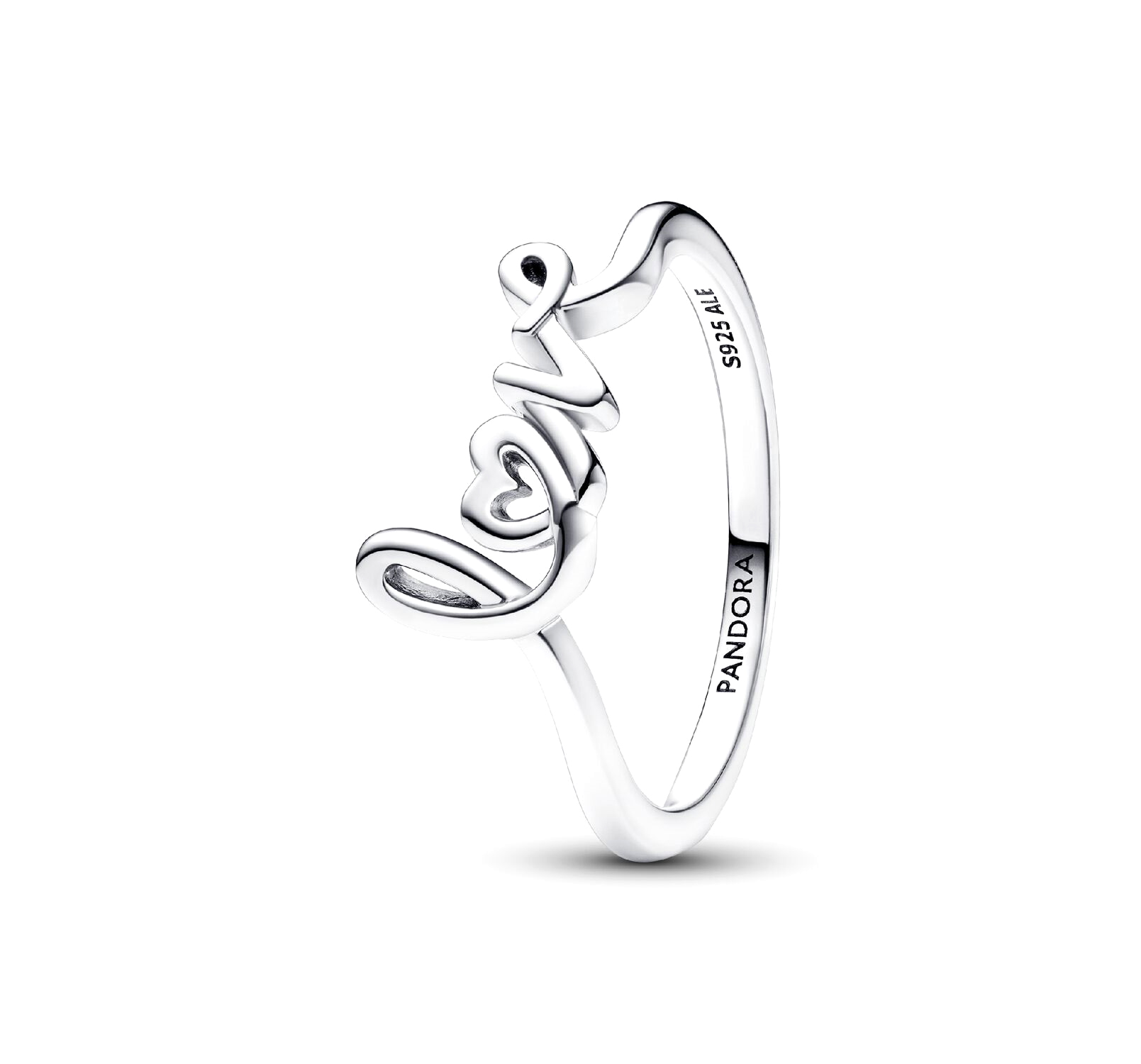 آنچه در دل داری، با این انگشتر بیان کن. واژهی "love" (عشق) با حالتی شبیه دستخط، نقطهی کانونی دلنشینی برای این انگشتر نقرهای به وجود آورده که بهنرمی با فرم حلقه هماهنگ شده است. حرف "o" به شکل یک قلب طراحی شده تا حالوهوایی شیرین و بازیگوش به آن ببخشد.