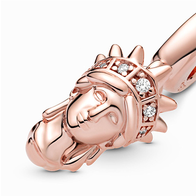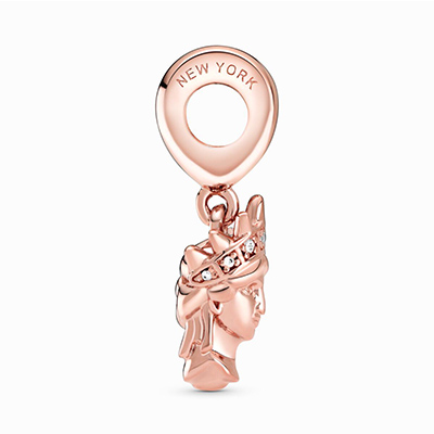 نیویورک شهری که هرگز نمی خوابد. خاطرات این شهر یا علاقه خود به آن را با این چارم آویز خاص از مجسمه آزادی در استایلتان زنده نگه دارید. این چارم با روکش رزگلد با دقت به شکل سر مجسمه اصلی با تمام جزییات آن طراحی و ساخته شده است. این مجسمه نماد آزادی و دوستی بوده و شما می توانید آن را به هر ظاهری اضافه کنید.