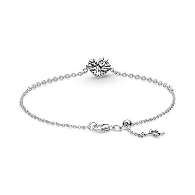 روابط خانوادگی خود را خاصتر کنید با دستبند زنجیری درخت خانوادگی قلبی پاندورا.این دستنبد زنجیری نقرهای دارای یک دیسک قلبی زیبا با جزییات درخت و نگینهای شفاف زیباست.گیرهی این دستبند برای تنظیم هرچه راحتتر طراحی شده و گیرهی آن از جنس سیلیکون میباشد همچنین در انتهای زنجیر یک برگ زیبا و نگیندار اضافه شدهاست.این دستبند را همواره به دست داشته باشید یا به خانواده عزیز خود هدیه دهید.