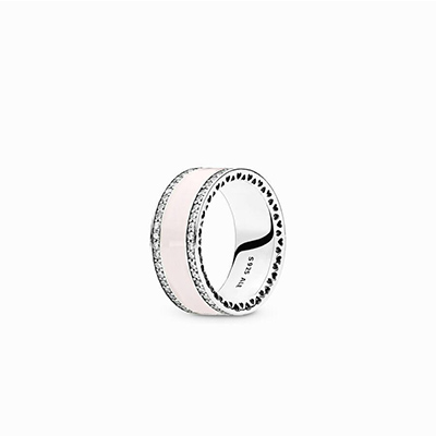 به استایل خود قطعه ای جسورانه و صورتی با قلب هایی برش خورده اضافه کنید. این حلقه قلب های پاندورایی با الهام از قدرت زنانگی طراحی و ساخته شده و با نگین های شفاف برای درخشش هرچه بیشتر تزیین گشته است.قلب های برش خورده در اطراف این انگشتر پهن زیبایی مدرنی به این طرح اضافه می کنند.