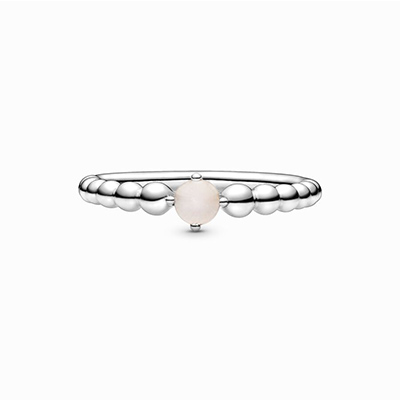 با اضافه کردن این حلقه خاص به کارهای مشابه پاندورا استایلی خاص برای هر ماه بسازید. شما میتوانید با این حلقه زیبا، تولدی در ماه جان ( ۱۱ خرداد تا ۹ تیر ) را جشن بگیرید. این طرح استثنایی که به شکل نقاطی به هم چسبیده و نقره ای است، در مرکز خود دارای نگینی رنگی و درخشان می باشد. هر یک از نگینها و رنگ آنها به عنوان نمادی برای ماه تولد اشخاص عمل میکنند. این نگین صورتی روشن و کدر، نماد دانش، شادی و عشق برای متولدین ماه جان است. شما میتوانید این حلقه و کارهای مشابه آن را به کلکسیون شخصی خود اضافه کنید یا به یکی از عزیزانتان که متولد ماه جان است، هدیه دهید.