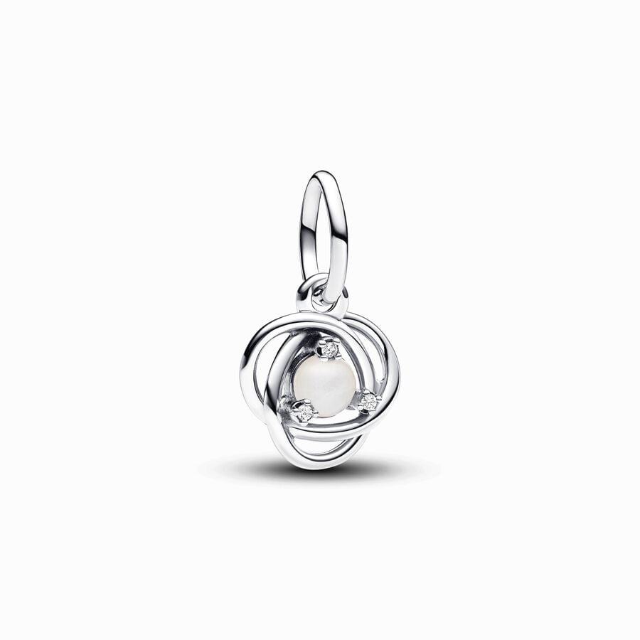 با اضافه کردن چارمهای آویز دایرهی ابدی نگیندار پاندورا به دستبندهای خود رنگ و شخصیتی جدید ببخشید.شما میتوانید با این چارم زیبا، تولدی در ماه جان ( ۱۱ خرداد تا ۹ تیر ) را جشن بگیرید.این طرح خاص که چند دایره در هم تنیده را نشان میدهد، در مرکز خود دارای نگینی رنگی و درخشان است.هر یک از نگینها و رنگ آنها به عنوان نمادی برای ماه تولد اشخاص عمل میکنند.این نگین سفید مرواریدی و کدر، نماد دانش، شادی و عشق برای متولدین ماه جان است.شما میتوانید آن را به کلکسیون شخصی خود اضافه کنید یا به یکی از عزیزانتان که در ماه جان متولد شدهاست، هدیه دهید.