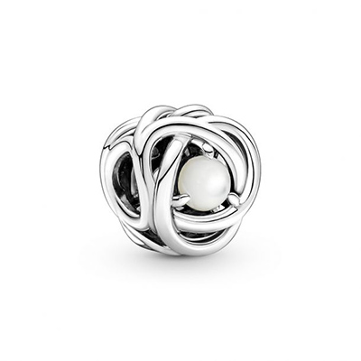 با اضافه کردن چارمهای مهرهای دایرهی ابدی نگیندار پاندورا به دستبندهای خود رنگ و شخصیتی جدید ببخشید.شما میتوانید با این چارم زیبا، تولدی در ماه جان ( ۱۱ خرداد تا ۹ تیر ) را جشن بگیرید.این طرح خاص که چند دایره در هم تنیده را نشان میدهد، در مرکز خود دارای نگینی رنگی و درخشان است.هر یک از نگینها و رنگ آنها به عنوان نمادی برای ماه تولد اشخاص عمل میکنند.این نگین سفید مرواریدی و کدر، نماد دانش، شادی و عشق برای متولدین ماه جان است.شما میتوانید آن را به کلکسیون شخصی خود اضافه کنید یا به یکی از عزیزانتان که در ماه جان متولد شدهاست، هدیه دهید.