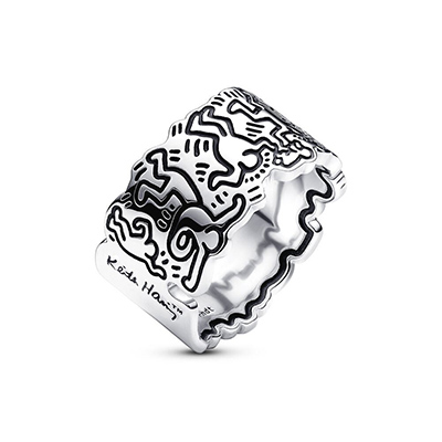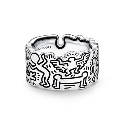 روی حلقه پهن آدمکها و سگ کیت هارینگ پاندورا ترکیبی از طرح های نمادین و محبوب کیت هارینگ طراحی و کشیده شده اند.آدمک های عاشق و رقصان هارینگ در این حلقه با لعاب سیاه برجسته تر شده اند.به استایل خود کمی روحیه هنر خیابانی و مدرن اضافه کنید.هارینگ اکثر کارهای معروف خود را با الهام از چیزهایی که در مرکز شهر نیویورک در دهه 1980 دیده است طراحی کرده است.هنرمند خود باشید و این حلقه گرافیکی را به ظاهر خود اضافه کنید تا به شما یادآوری شود هنر برای همه است.