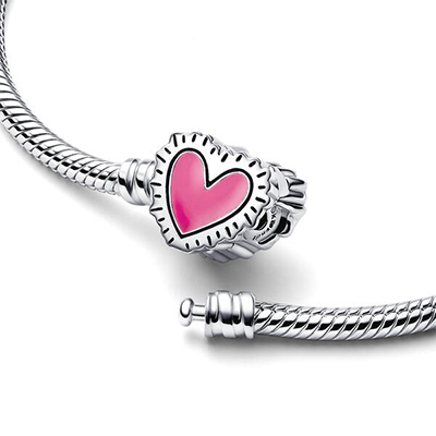 به استایل روزمره خود کمی هنر مدرن اضافه کنید.با داشتن یکی از طرح های نمادین این هنرمند یعنی قلب درخشان به عنوان دستبند دقایق خود، می توانید از این دستبند هنری به عنوان بوم نقاشی برای نمایش خلاقیت خود استفاده کنید.لعاب مشکی و صورتی استفاده شده در گیره این دستبند سبک گرافیکی این هنرمند را به خوبی به تصویر میکشد.خلاقیت خود را با ساخت استایلی از طرح های نمادین هنرمند معروف کیت هارینگ نشان دهید تا به شما یادآوری شود هنر برای همه است.