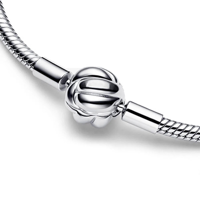 این دستبند خاص و جدید پاندورا می تواند دستبند مورد علاقه شما باشد! این دستبند دقایق نقرهای ساده، که به صورت دستی با گیره ای به شکل گره های در هم رفته طراحی و ساخته شده است حتی به تنهایی خیره کننده است.مانند تمامی دستبندهای دقایق پاندورا شما میتوانید این دستبند را با چارمهایتان شخصیسازی کرده و استایلی چند لایه بسازید.