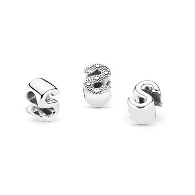 با چارمهای حروف الفبای پاندورا داستان خود را بازگو کنید و کلماتی که برای شما مفهوم خاصی دارند را بنویسید.شما میتوانید روی دستبند دقایق خود حروف الفبای مورد علاقهتان را چیده و استایل شخصی خود را کاملتر کنید. حرف S را به دستبند خود اضافه کنید یا به کسی که با این حرف ارتباط عمیقی دارد هدیه دهید.این چارم نقرهای دارای طرفی صیقلی بوده و طرف دیگر آن با قلب و نقطههای نقرهای تزیین شده است.