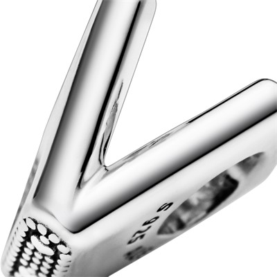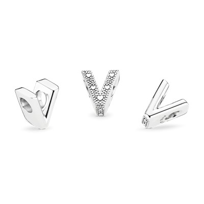 با چارمهای حروف الفبای پاندورا داستان خود را بازگو کنید و کلماتی که برای شما مفهوم خاصی دارند را بنویسید.شما میتوانید روی دستبند دقایق خود حروف الفبای مورد علاقهتان را چیده و استایل شخصی خود را کاملتر کنید. حرف V را به دستبند خود اضافه کنید یا به کسی که با این حرف ارتباط عمیقی دارد هدیه دهید.این چارم نقرهای دارای طرفی صیقلی بوده و طرف دیگر آن با قلب و نقطههای نقرهای تزیین شده است.