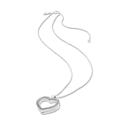 لاکت زیبای دیگری از پاندورا، این لاکت را با چارمهای مخصوص لاکتهای پاندورا پُر کرده و نشان دهید چه کسی هستید! این لاکت قلبی دیوارههایی نقرهای داشته و شیشهای است تا چارمهای شما از هر دو طرف خود را به خوبی نشان دهند.روی این لاکت زیبا و درخشان با نگینهای شفاف تزیین شدهاست.زنجیر این گردنبند را میتوانید به سه اندازه، به دلخواه خود تغییر دهید. لاکت را باز کرده و چارمهای لاکت مورد علاقه خود را در آن بچینید.