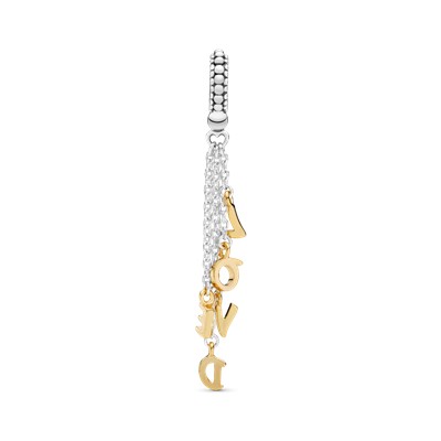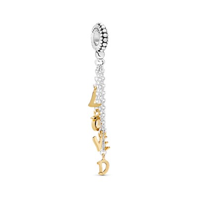 حس خود را با این چارم دو رنگ هجا کنید! حروف پیام "محبوب" (Loved) با روکش طلا ۱۸ عیار از پایهی زنجیری و نقرهای این چارم آویزان هستند و خودنمایی میکنند.شما میتوانید آن را با حلقه و گردنبند مشابه ست کرده و استایل خود را کامل کنید.