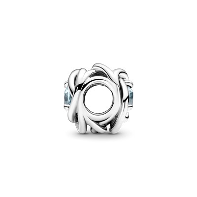 با اضافه کردن چارمهای مهرهای دایرهی ابدی نگیندار پاندورا به دستبندهای خود رنگ و شخصیتی جدید ببخشید.با این چارم زیبا،شما میتوانید تولدی در ماه مارس ( ۱۰ اسفند تا ۱۱ فروردین ) را جشن بگیرید.این طرح خاص که چند دایره در هم تنیده را نشان میدهد، در مرکز خود دارای نگینی رنگی و درخشان است.این چارم نماد ابدیت و حسهای همیشگی است.همچنین هر یک از نگینها و رنگ آنها به عنوان نمادی برای ماه تولد اشخاص عمل میکنند.این نگین آبی اقیانوسی، نماد آرامش، وفاداری،شجاعت و دوستی برای متولدین ماه مارس است.شما میتوانید آن را به کلکسیون شخصی خود اضافه کنید یا به یکی از عزیزانتان که در ماه مارس متولد شدهاست، هدیه دهید.