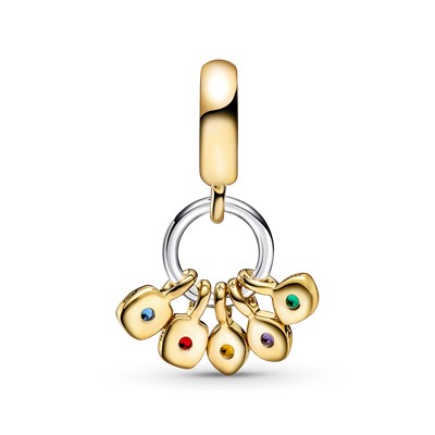 قدرت سنگهای ابدیت را با چارم آویز سنگهای ابدیت مارول اونجرز پاندورا مهار کنید.این چارم نقره با روکش طلا ۱۴ عیار با کریستالهای دستساز تزیین شده که هر کدام نماد یکی از سنگهای ابدیت هستند.هر یک از آویزها و کریستالها روی خود اسم سنگ ابدیت و قدرت آن را دارند.این چارم را به کلکسیون مارولی خود اضافه کنید و دستبند خود را کاملتر کنید.