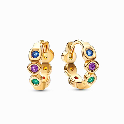 قدرت سنگهای ابدیت را با گوشواره های حلقه ای سنگهای ابدیت مارول پاندورا مهار کرده و همواره همراه داشته باشید.این گوشواره های دارای روکش طلا ۱۴ عیار با کریستالهای دستساز تزیین شده که هر کدام نماد یکی از سنگهای ابدیت(SPACE,POWER,TIME,REALITY,SOUL,MIND) هستند. این چارم را به کلکسیون مارولی خود اضافه کنید و استایلتان را کامل کنید.