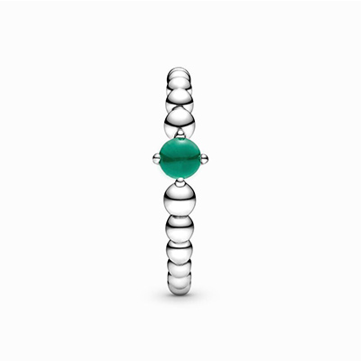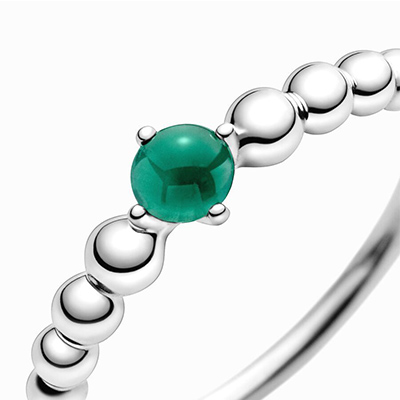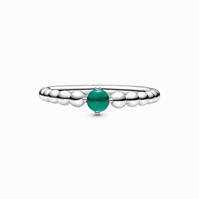 با اضافه کردن این حلقه خاص به کارهای مشابه پاندورا استایلی خاص برای هر ماه بسازید. شما میتوانید با این حلقه زیبا، تولدی در ماه مِی ( ۱۱ اردیبهشت تا ۱۰ خرداد ) را جشن بگیرید. این طرح استثنایی که به شکل نقاطی به هم چسبیده و نقره ای است، در مرکز خود دارای نگینی رنگی و درخشان می باشد. هر یک از نگینها و رنگ آنها به عنوان نمادی برای ماه تولد اشخاص عمل میکنند. این نگین سبز تیره، نماد امید، آرامش و رشد برای متولدین ماه می است. شما میتوانید این حلقه و کارهای مشابه آن را به کلکسیون شخصی خود اضافه کنید یا به یکی از عزیزانتان که متولد ماه می است، هدیه دهید.