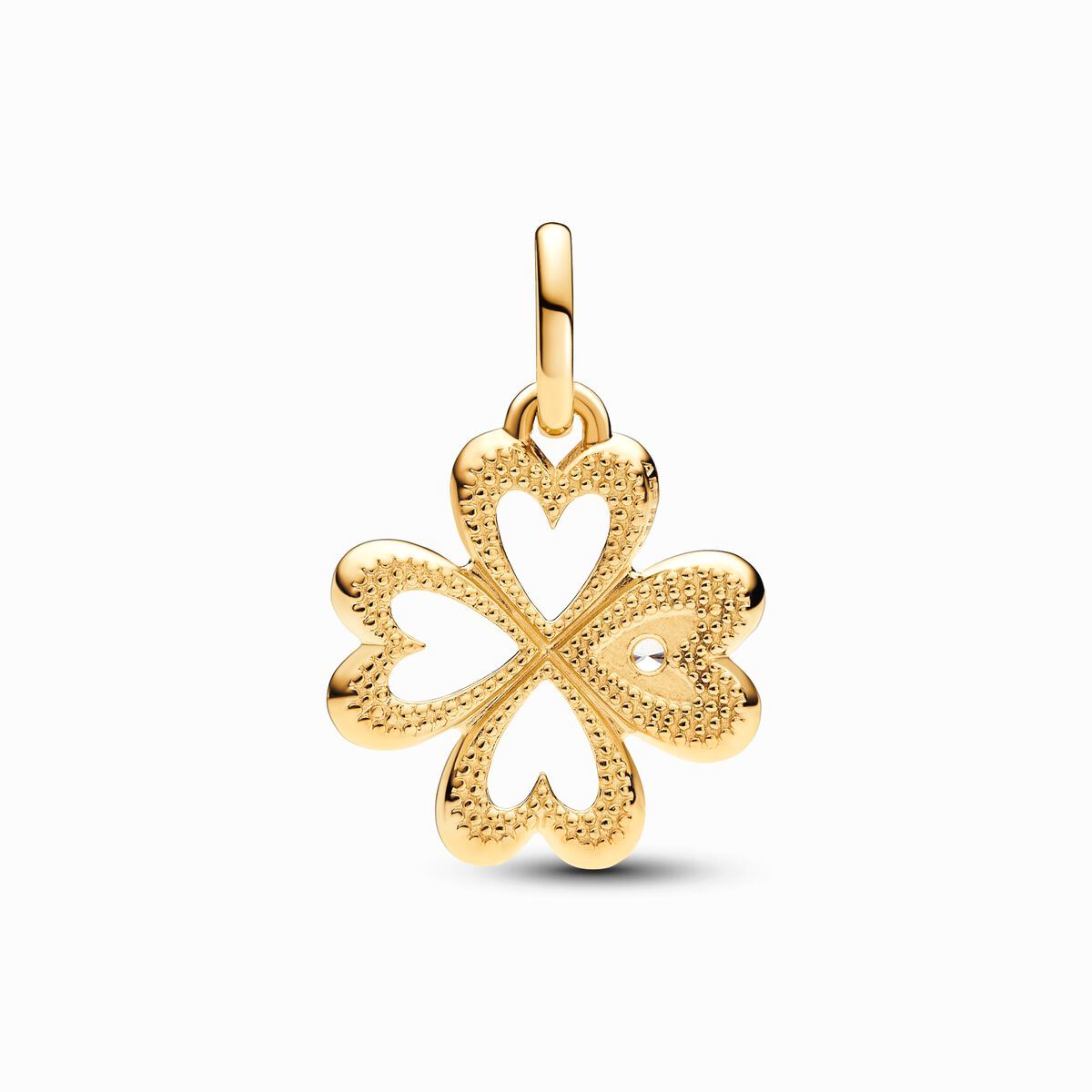 با این چارم شبدر خوششانستر از همیشه بشوید.این چارم طلایی و آویز زیبا، به شکل یک شبدر چهار برگ نماد خوششانسی طراحی و ساخته شدهاست. طرفی از این چارم با نگین درخشان تزیین شده است تا بیشتر روی دستبند شما بدرخشد.شما میتوانید آن را به حلقههای زنجیرهای ام-ای خود با هر رنگ و جنسی اضافه کنید و استایلی رنگارنگ و چند لایه بسازید.