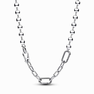 این گردنبد جدید ام-ای ثابت می کند که از ترکیب دو طرح کاملا متفاوت چه استایل خاصی می توان ساخت. شما می توانید این گردنبند استثنایی را که با الهام از ستاره های موسیقی راک و پانک دهه 90 طراحی و ساخته شده است به تنهایی در گردن داشته یا با آویزهای مورد علاقه خود این گردنبند ام-ای را تزیین کنید.